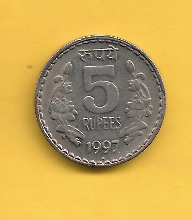 1997 indian 5 rupees