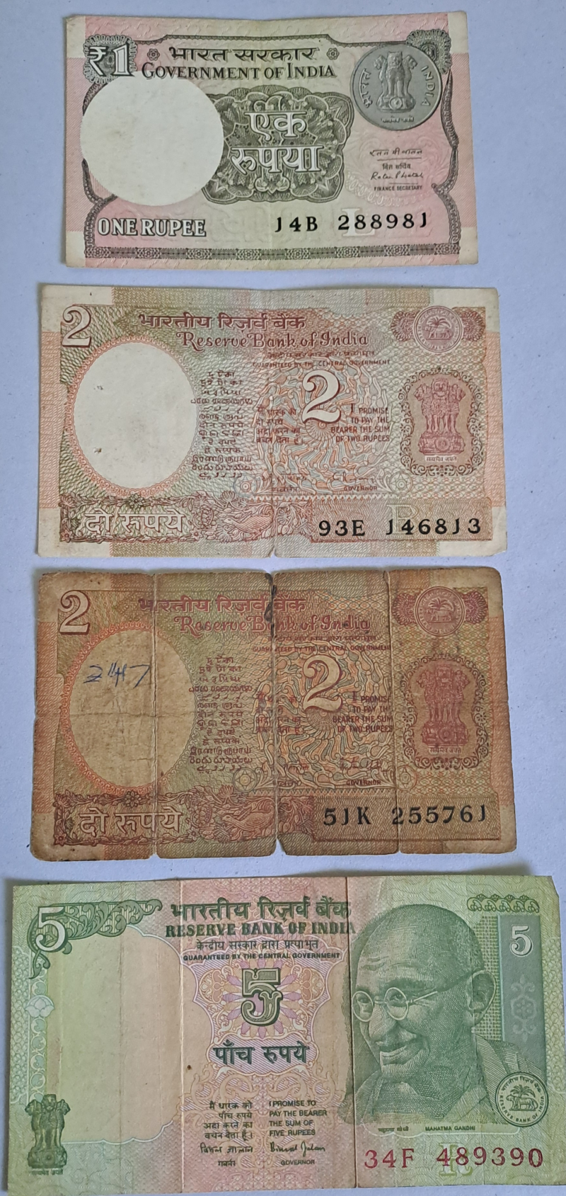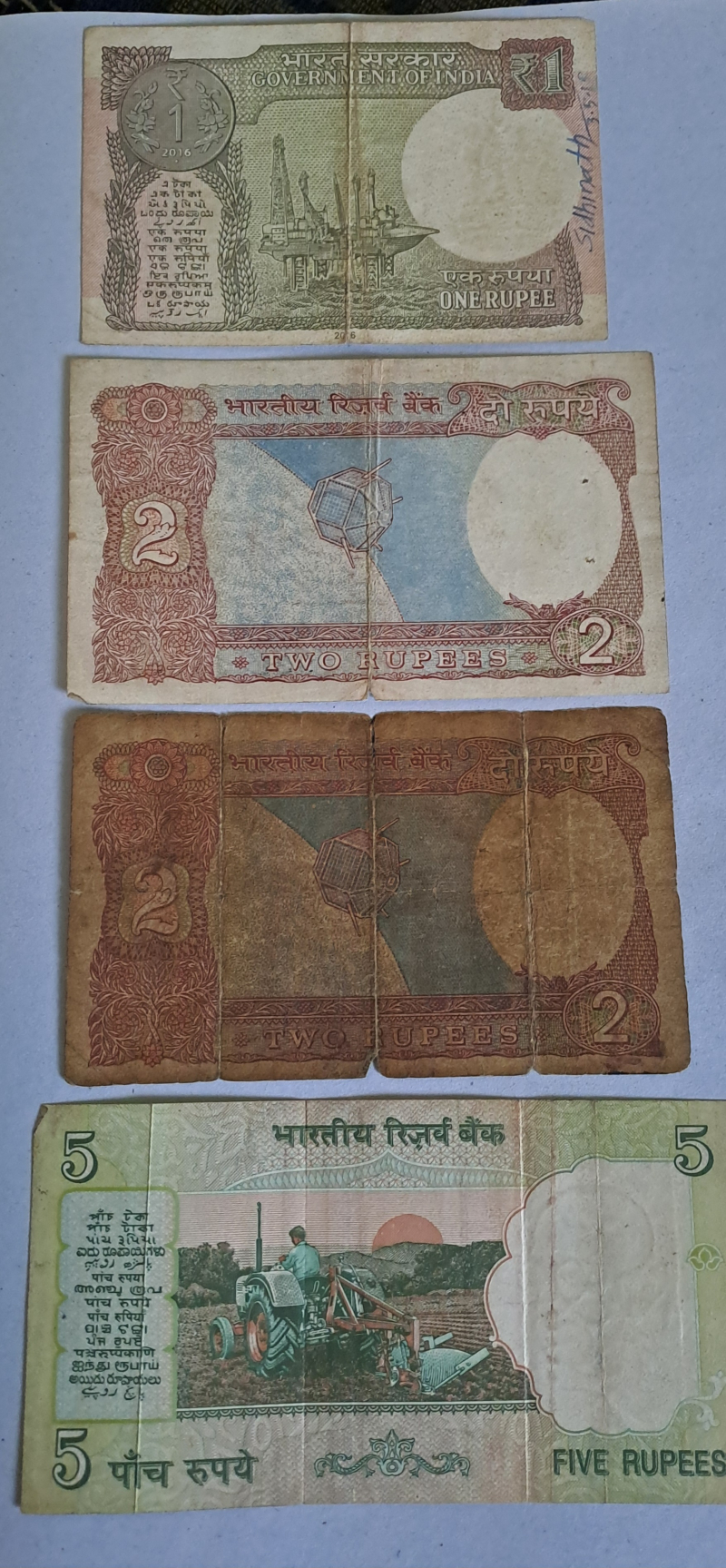 5 rupee tractor note with 1 rupee, 2 rupee rare note, intrested person plz contact.