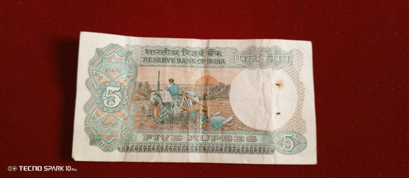 5 Rupees tractor old Indian note !