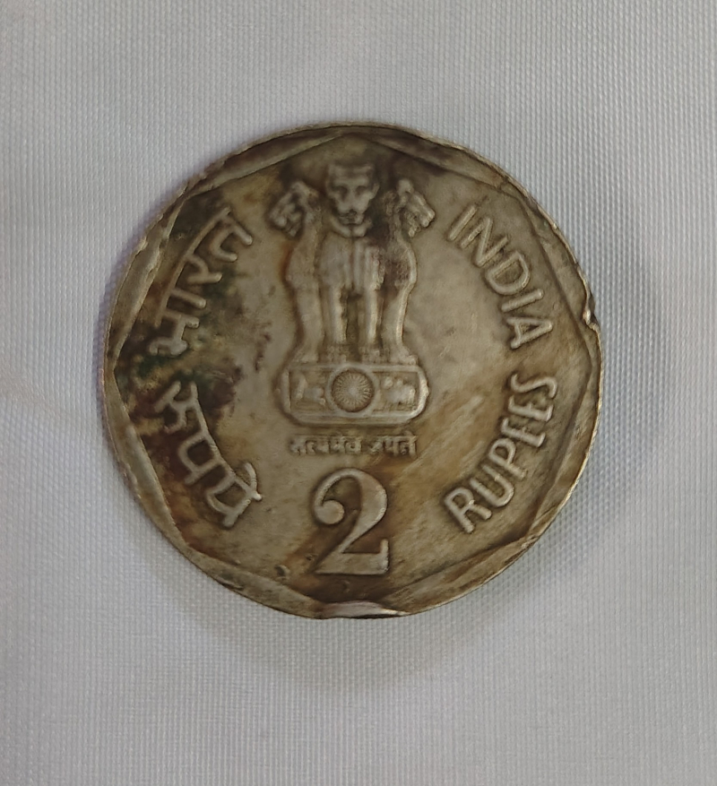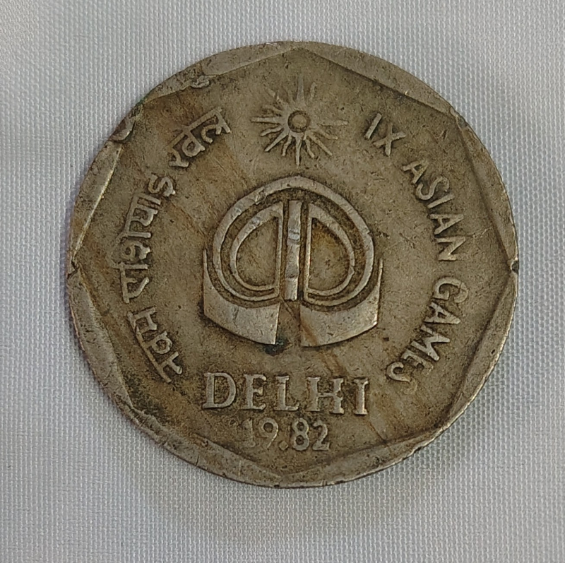 Old 2 rupees coin issued by Indian government memory of 9th Asian games delhi in 1982.