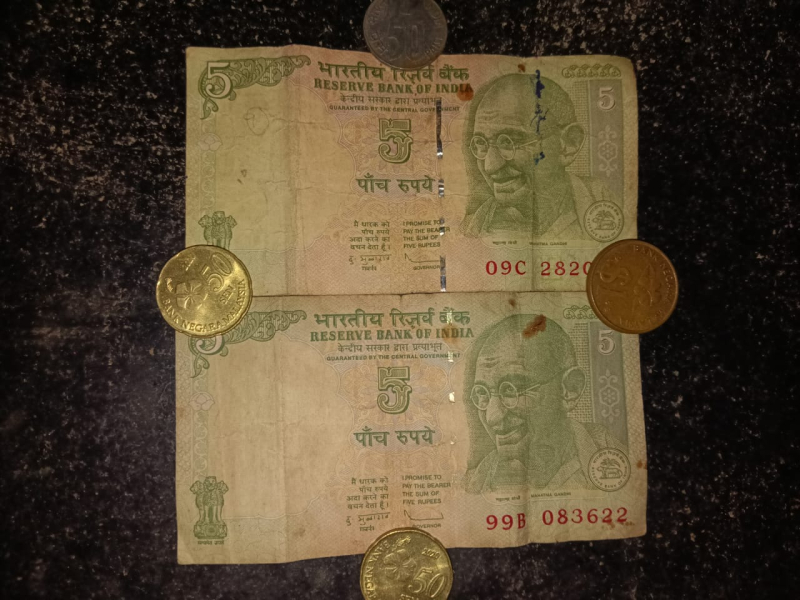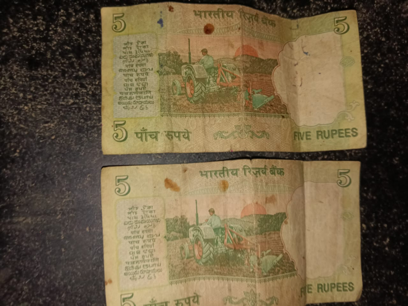 Five rupes notes one notes 09c 282079 .serial.again notes 99B 0833622 serial no
