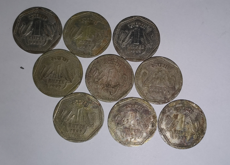 Old 1 rupee Coin (1985) H-mint (Heaten press UK) 9 coins availabe each coin 1200 rs