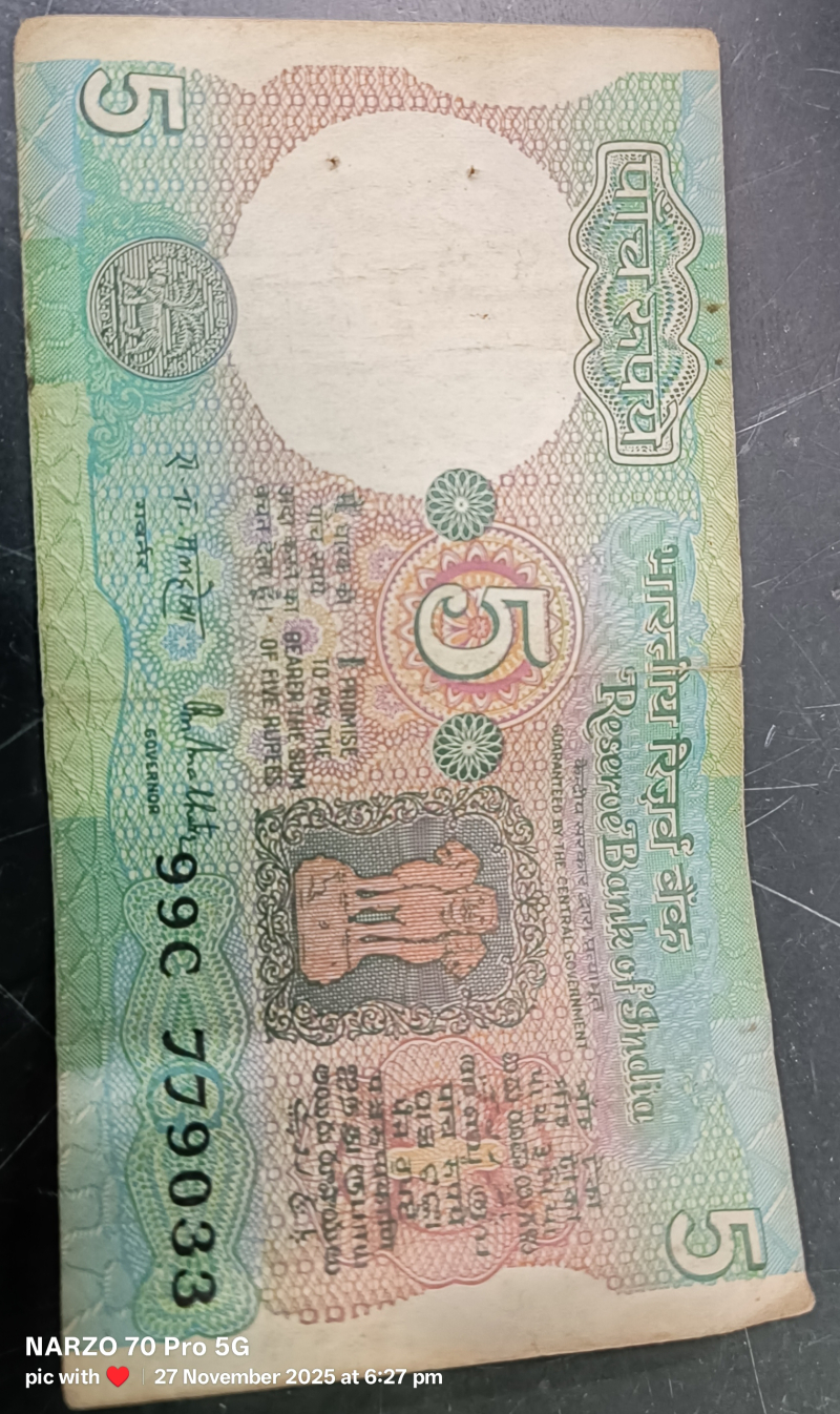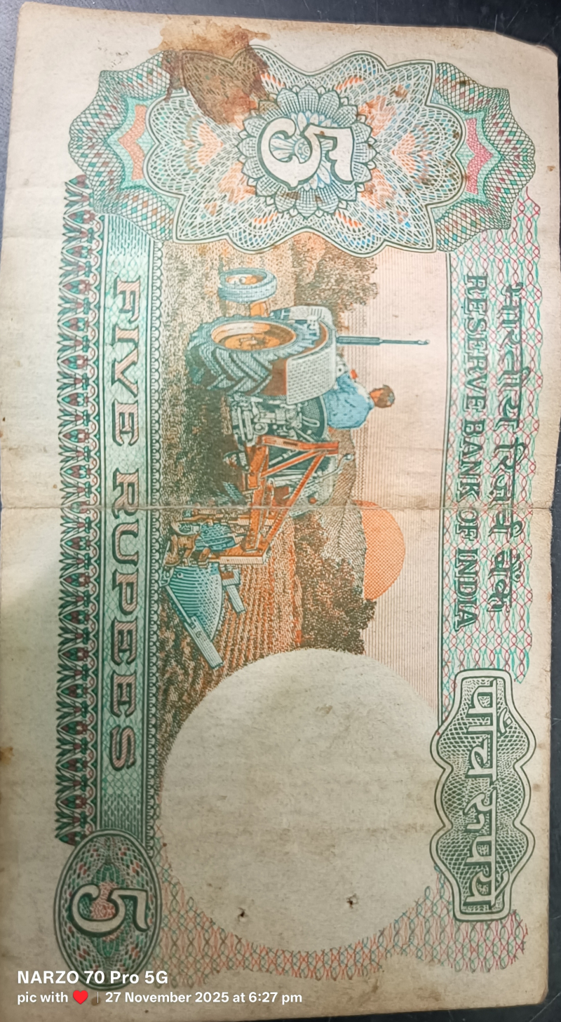 Old 5 rupees note with tractor symbol. Messege me on whatsapp