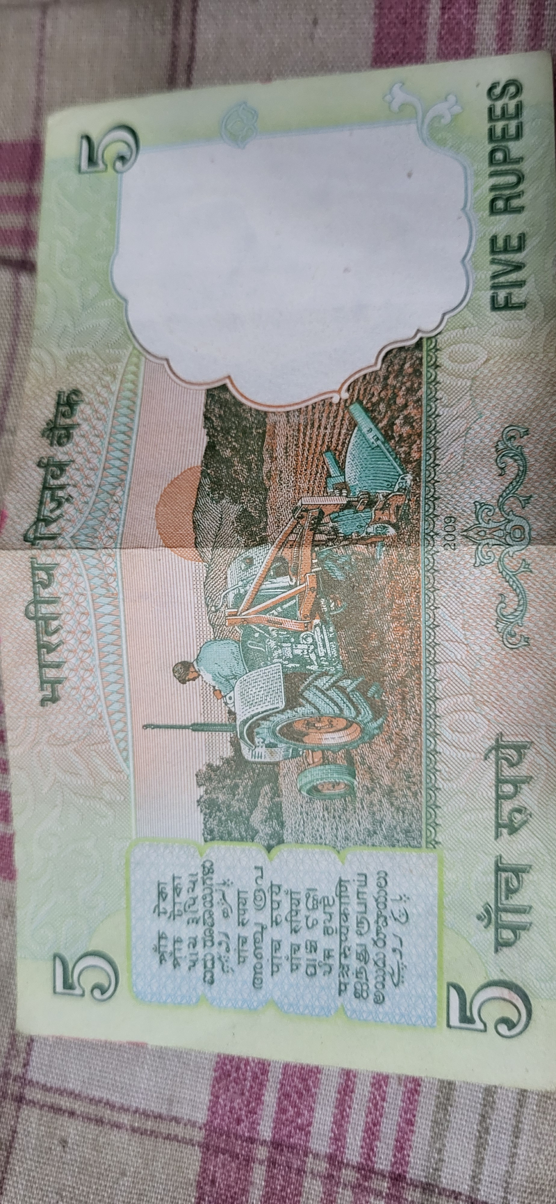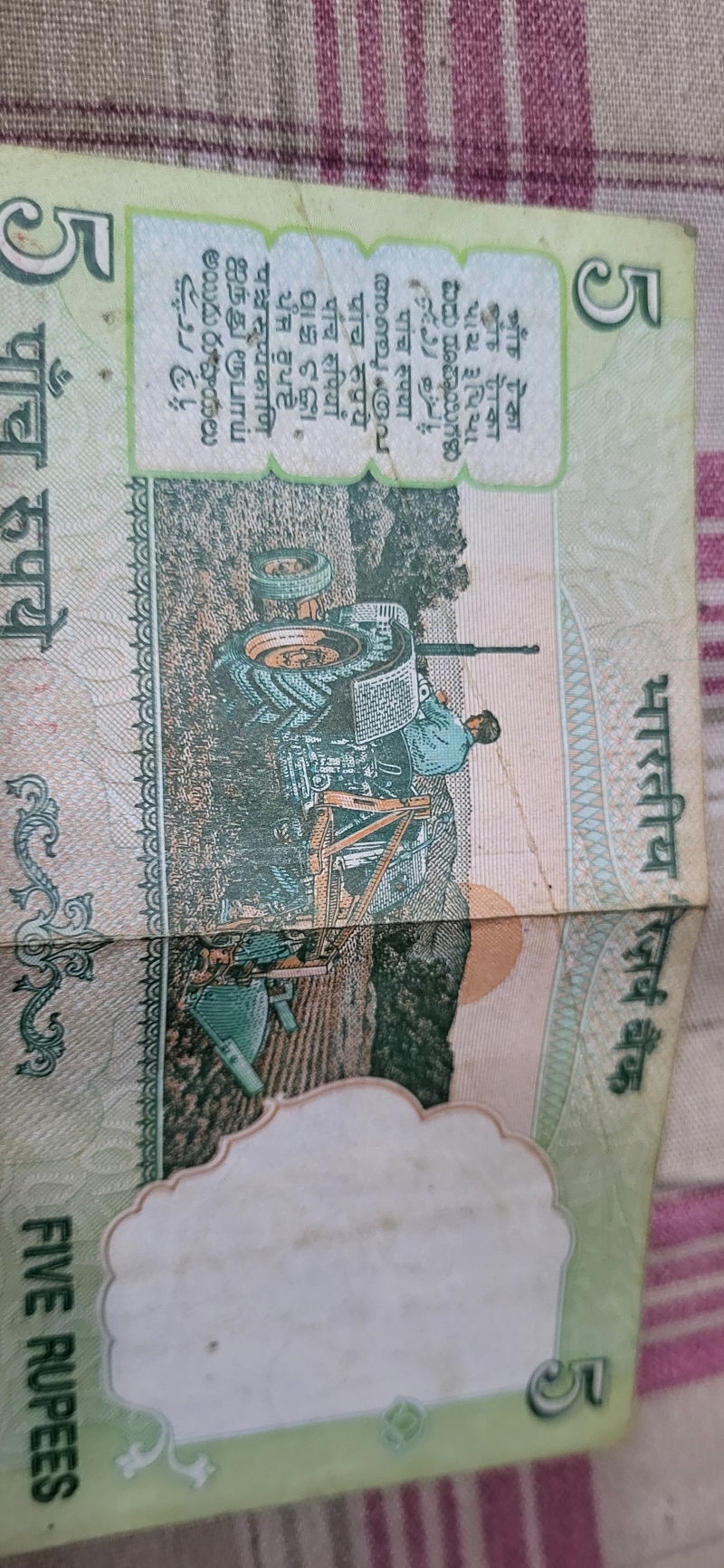 5 Rupees tractor Note