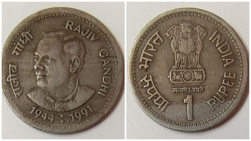 Old rajiv gandhi 1 rs coin 1944:1991