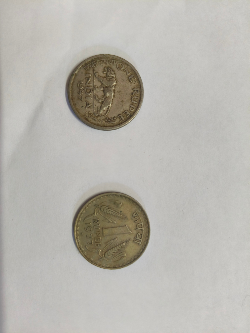 1 rupee coin 1947 , 1 rupee coin 1977 antic pieces