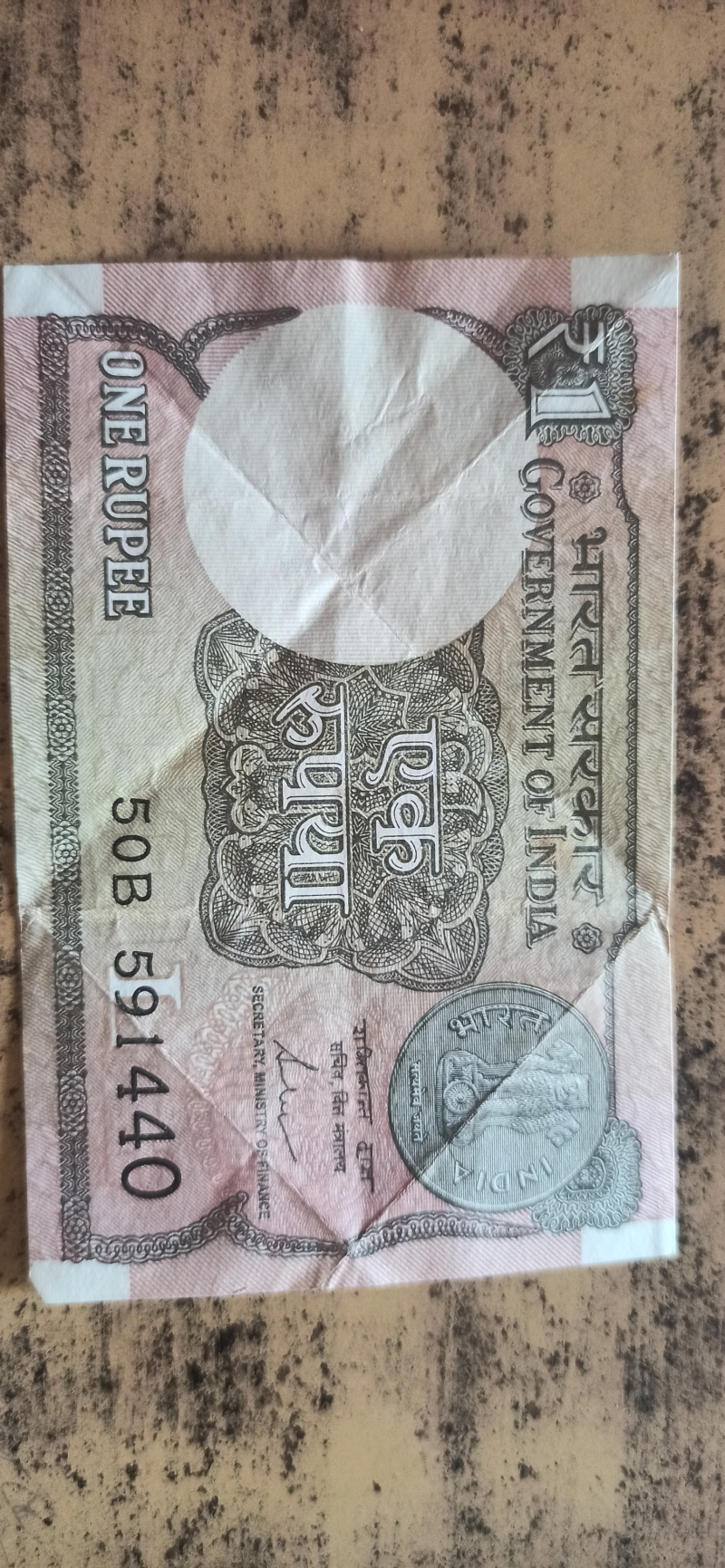 Old Indian currency one rupee note