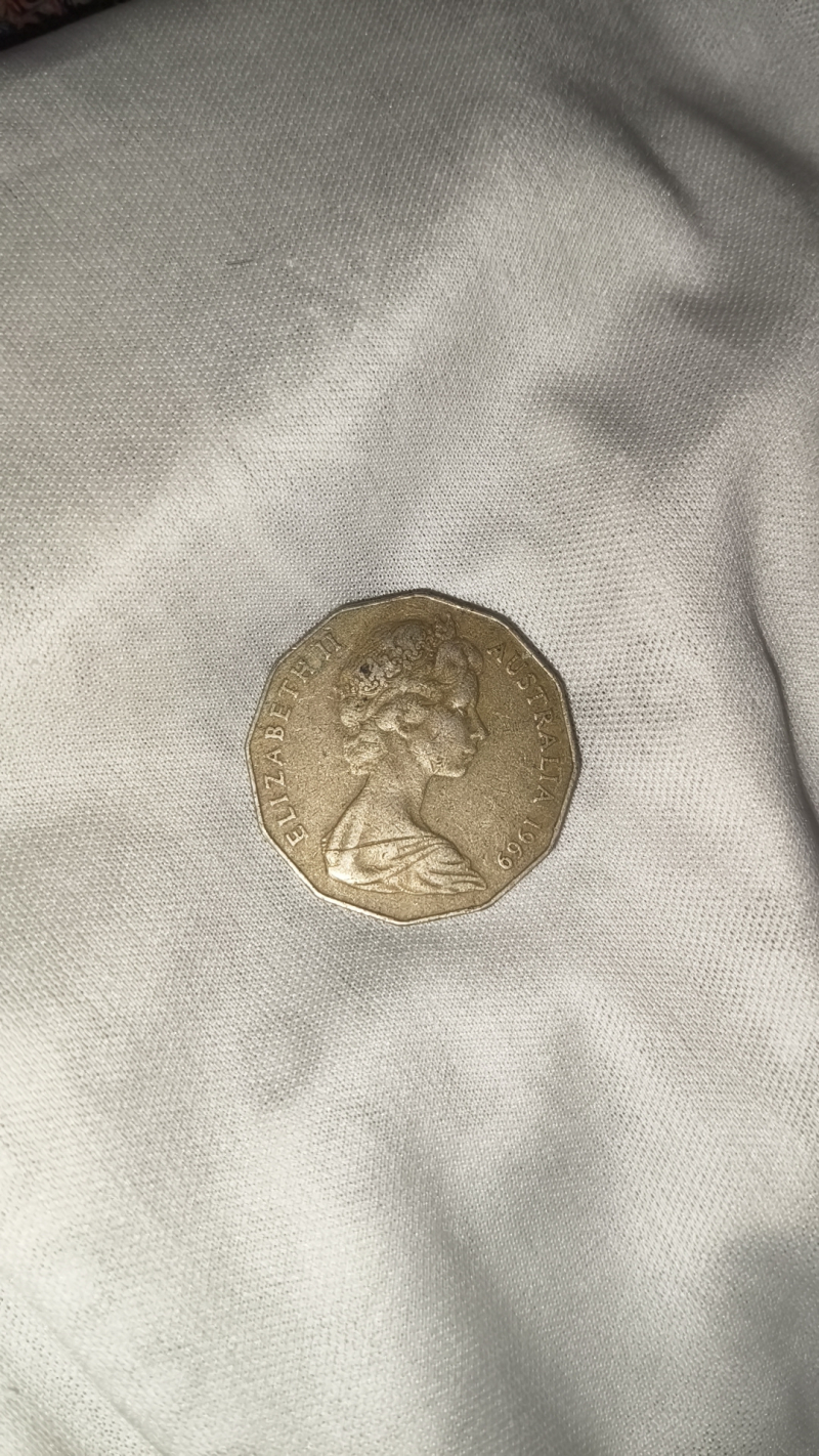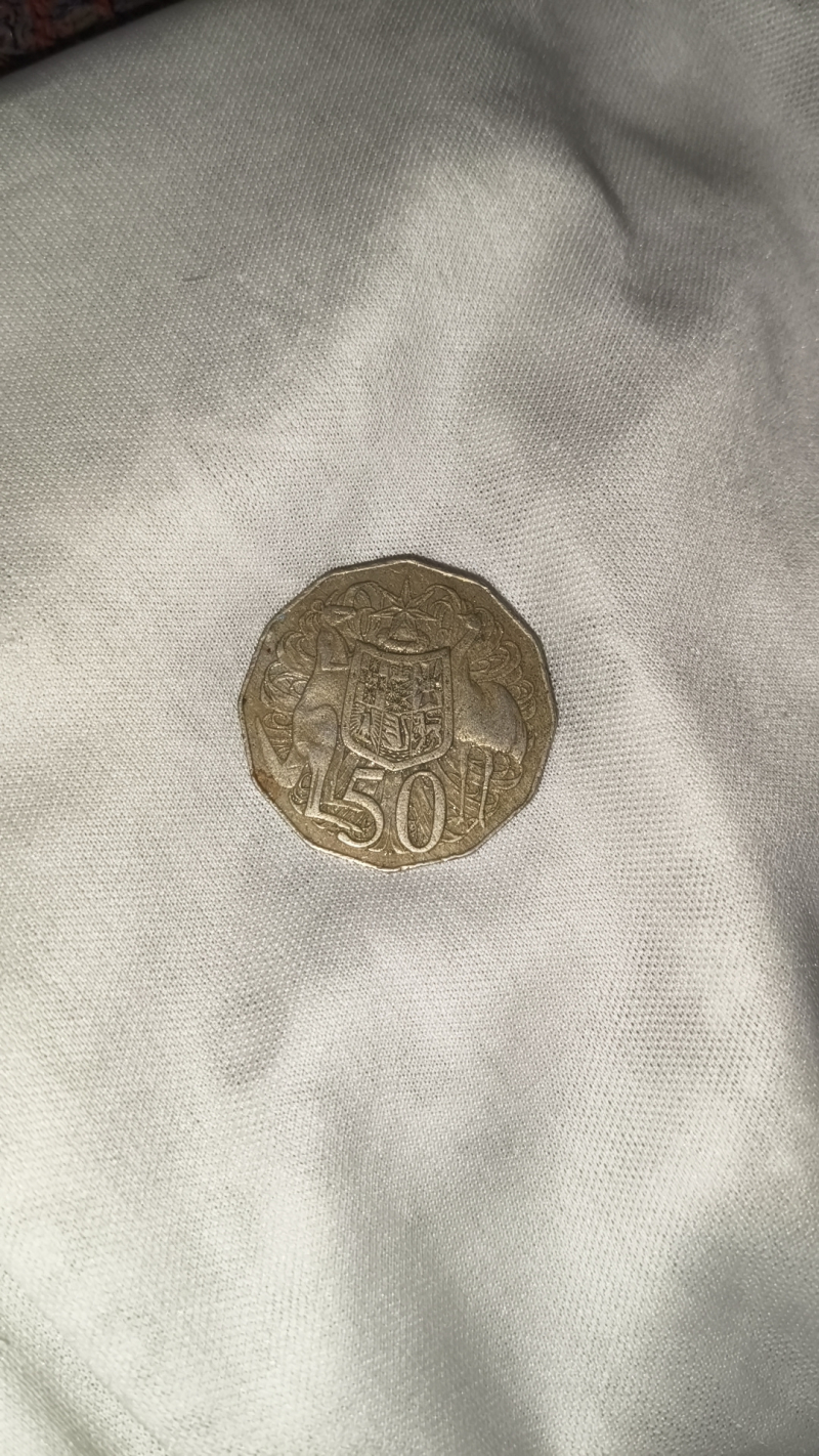 Rare 50 Cent Coin from Australia featuring the iconic Coat of Arms, 12-sided unique shape.