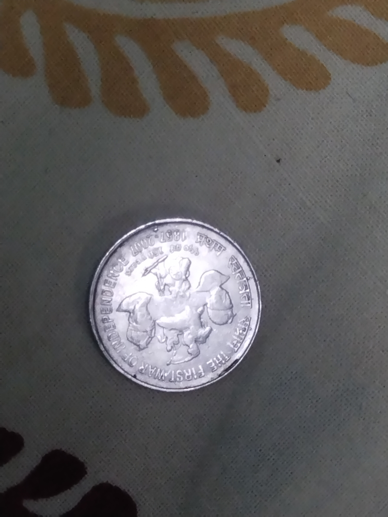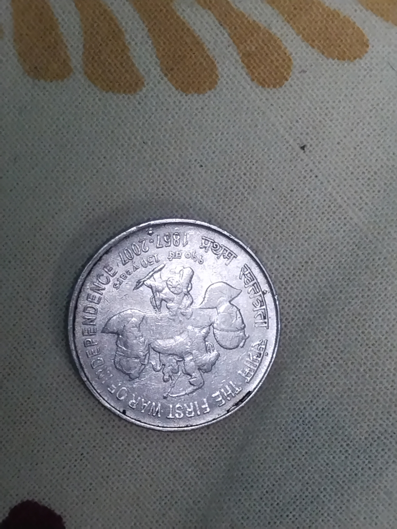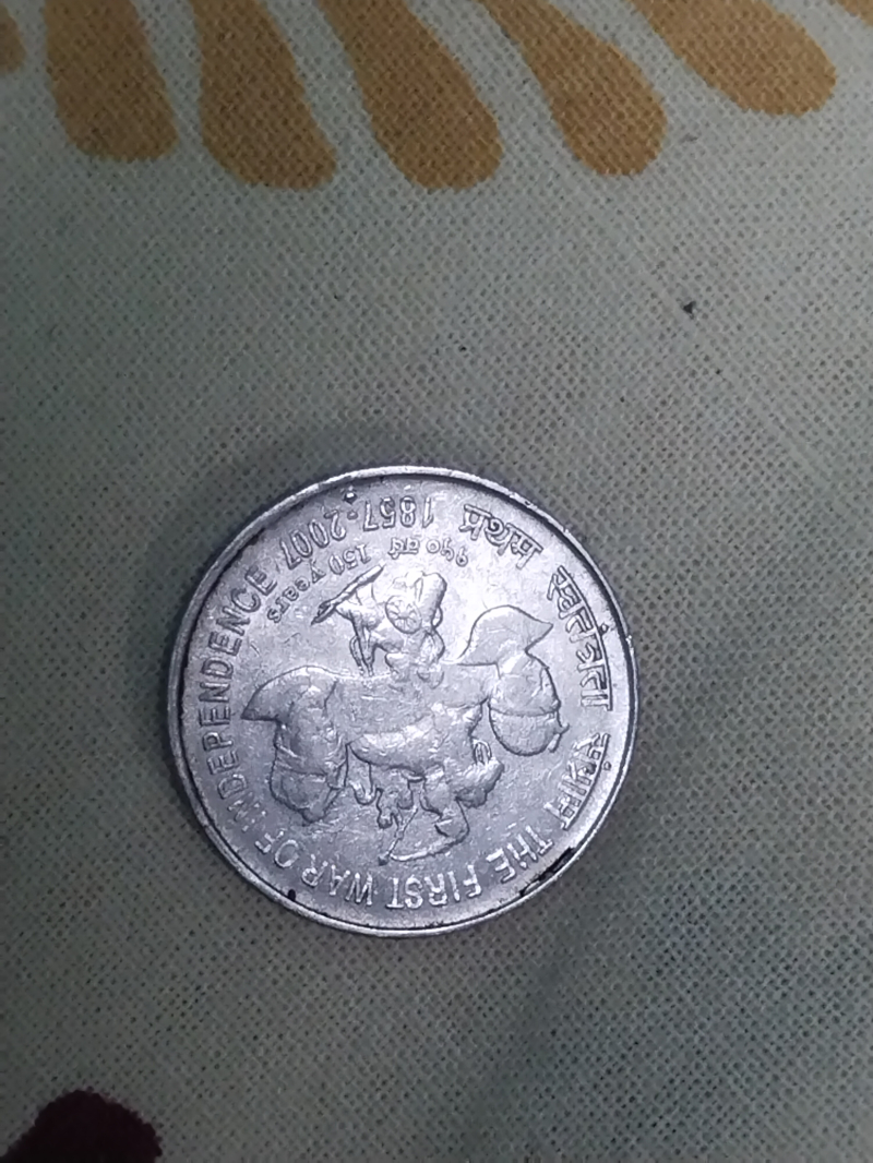 The ₹5 coin you're referring to was minted in 2007 by the Indian government to commemorate the 150th anniversary of the First War of Independence in 1857.