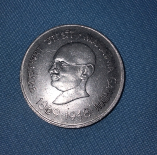 Original 1969 1 Rupee Mahatma Gandhi Commemorative Coin issued by the Government of India on the occasion of Gandhi’s Birth Centenary (1869–1969).