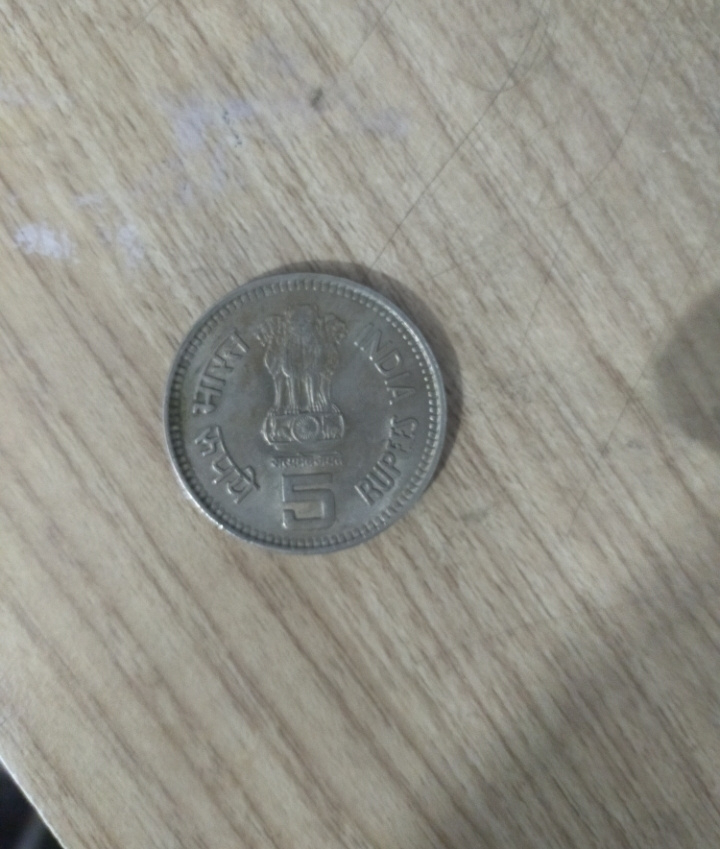 Back: Ashoka Pillar emblem and denomination (₹5)