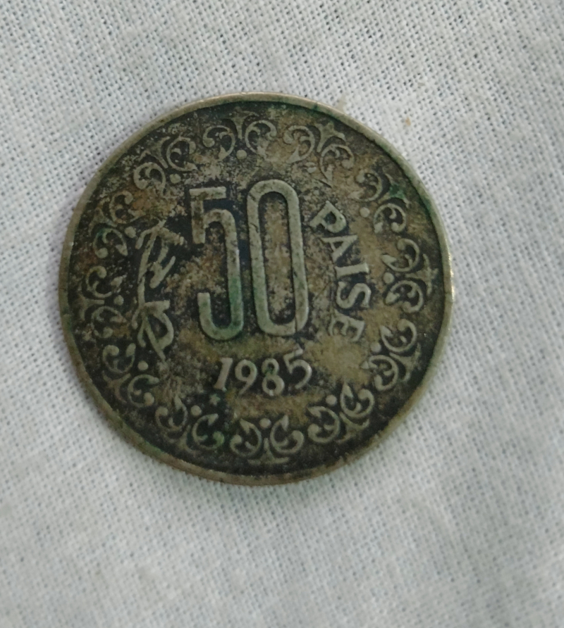 Old 50paisa coin India coin 1985 year