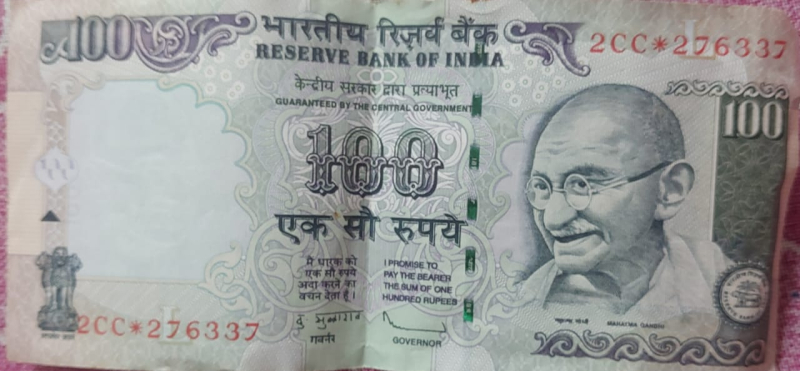 Star mark rear Rs 100 note